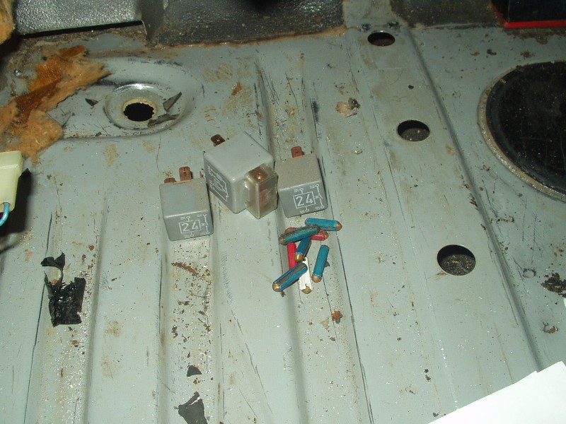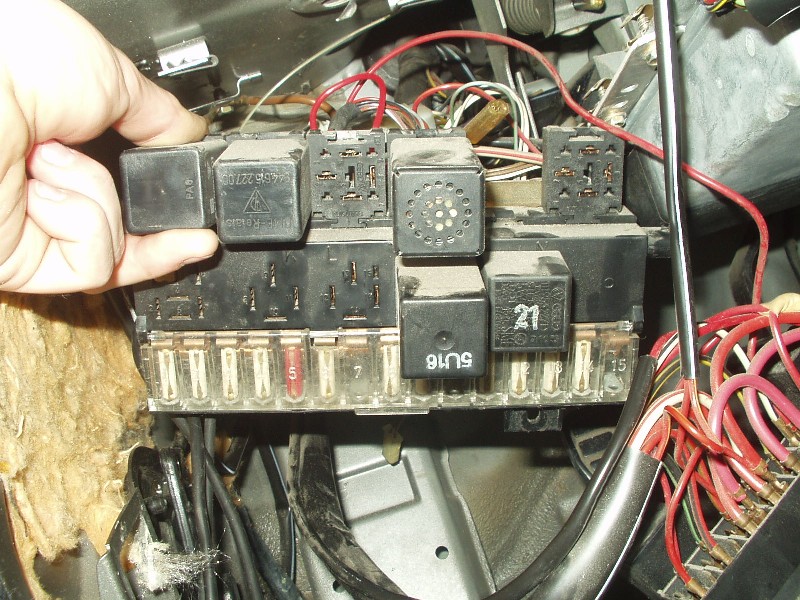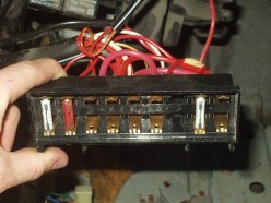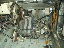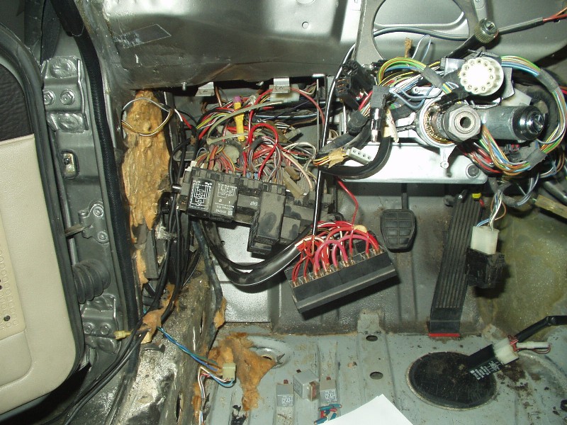 The main fuse block has numerous relays and fuses for items no longer needed, so one by one I traced the wires for the radio, air conditioner and removed the fuses, relays and unneeded wires. After each component was removed, I started the car and verified all the necessary electrical components still functioned. Not having a trailer at this point, I am forced to keep the hazards, turn signals and everything else needed for street legality. I decided to keep the fax machine and pop corn maker too, for those lonely drives home from the track.