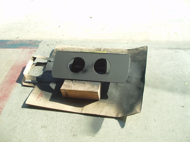 I found an older post on Rennlist with a picture from 'Geo' and a gauge panel he made using the stock center speaker panel. It looked fairly straight forward, and with a little advice from George himself, I took a crack at it. Cutting 2" PVC pipe I created two angled bits that will hold the gauges in place, as well as point them at the driver. Then I had to punch out two holes in the speaker panel to allow room for the back of the gauges. This was a royal pain in the ass, and the center section between the two holes broke off completely! A little discouraged, I broke out the lexan again and started glueing. The wife had the camera for the rest of the build up, which is probably a good thing. This has to be the most ghetto thing I've ever put together. Once the PVC was glued to the center panel, I used silicone adhesive to fill in the gaps and help add to the strength of the whole thing. With that dry, I added Bondo body filler and sanded. Added more body filler, then sanded more. Then added more body filler and sanded some more. You get the picture. I could have made it purdy, but I just left the 60 grit scratch marks and painted the whole deal flat black. Like a moron I hadn't test fit the piece until I was done and to my surprise, I put the gauges in the wrong face of the panel! When installed correctly, the gauges face the windshield. D'oh! All was not lost though. Installed so they face the driver, it almost sits flush. Good enough for the track!