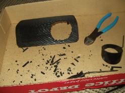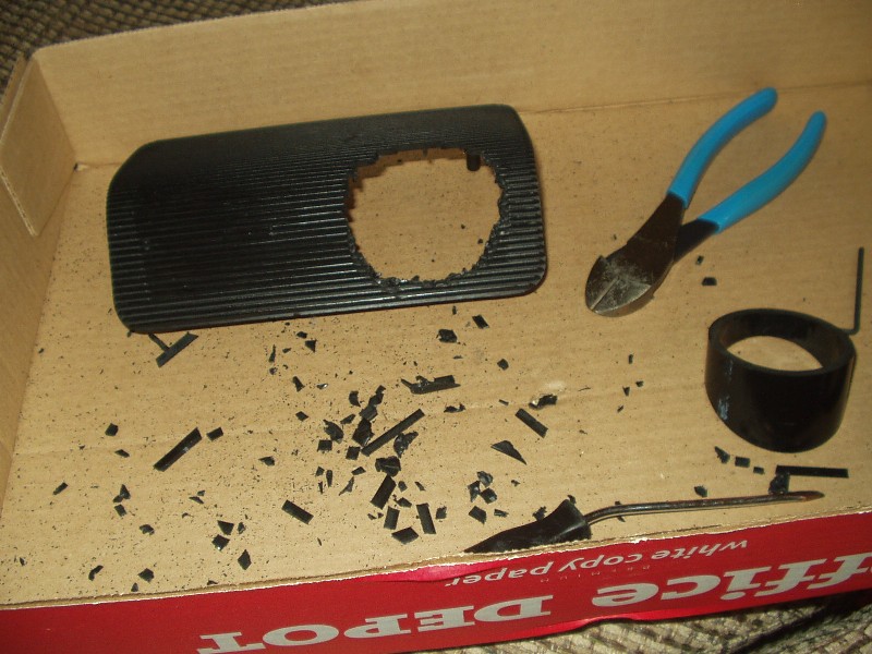 What's a racecar without a bunch of gauges right? The center console normally covers up a hole in the dash, but with it removed it leaves an area perfect for a couple of gauges. Using a panel of 1/8" lexan, I cut out a strip to fill that void; by the way, only use the kitchen counter when the wife is out of town. I would have killed a man for a bandsaw at this point, but alas, 'tis a hacksaw for me. With the panel in place I realized the angle was rediculous, so I added more lexan to the sides to bring the gauges into view.
