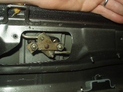 Since I removed the rear hatch switch, there was no need for the rear hatch motor. The latch itself mounted the release cable, which also was no longer need, so I broke out the hacksaw and freed the two; I must have saved a few grams there!