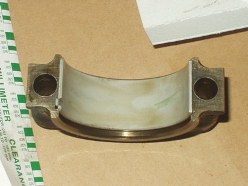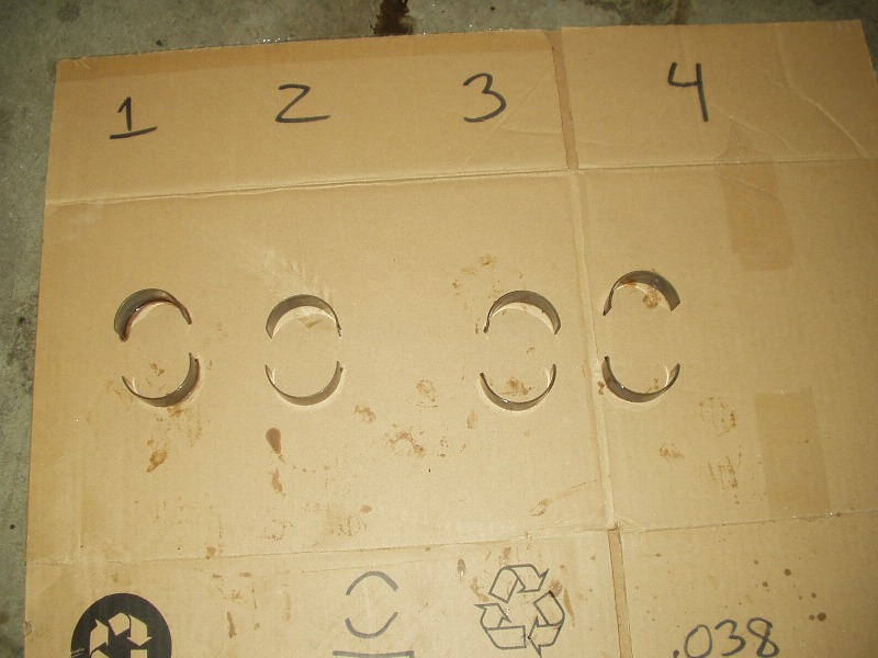 Okay, back to the matter at hand. I was a little intimidated by removing the rod caps because I know how much time, money and effort it takes to replace a damaged crankshaft. Once I realized you could knock them loose by tapping on the con rod studs, I was able to keep all the hard stuff off the crank. I used plastigauge to check the clearings and I was happy to discover that I was well within factory limits (see small green 'smudge' on the bearing below).