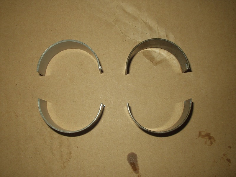 Obviously I wanted to compare the old rod bearings with the new, so I lined them up next to each other. I was honestly a little pissed when I saw that they were almost exactly the same thickness! Turns out my engine was in much better shape than I originally thought. Oh well, now I know.