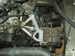 Thanks to Dave of 44cup.com for the AC delete bracket. Pulling off more weight made me smile. Getting the alternator belt tensioned made me want to scream though...my tensioner was bent, and it locked the jam nuts on so tight, I nearly destroyed them to get them loose. When I installed them, I was sure to only 'snug' them.